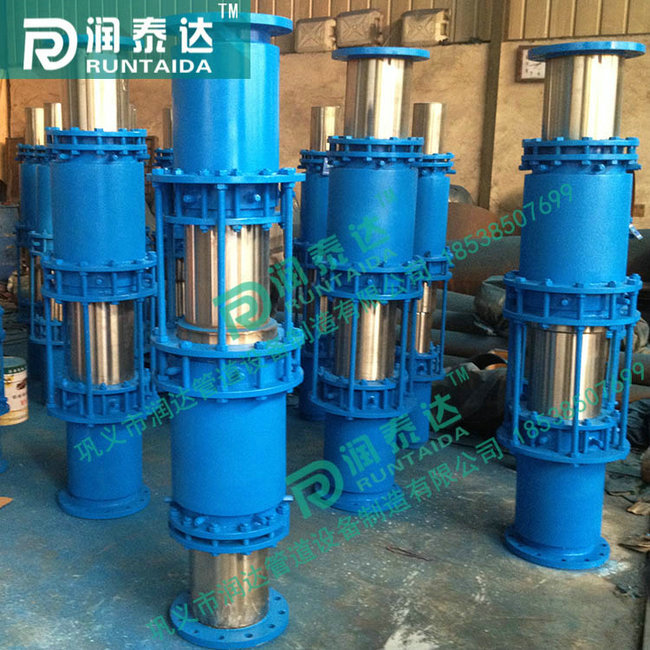 4、雙流向套筒補(bǔ)償器也稱管式伸縮節(jié),是熱流體管道的補(bǔ)償裝置,主要用于直線管道的輔設(shè)。適用于熱水、蒸氣、油脂類介質(zhì),通過滑動套筒對外套筒的滑移運(yùn)動,達(dá)到熱膨脹的補(bǔ)償。